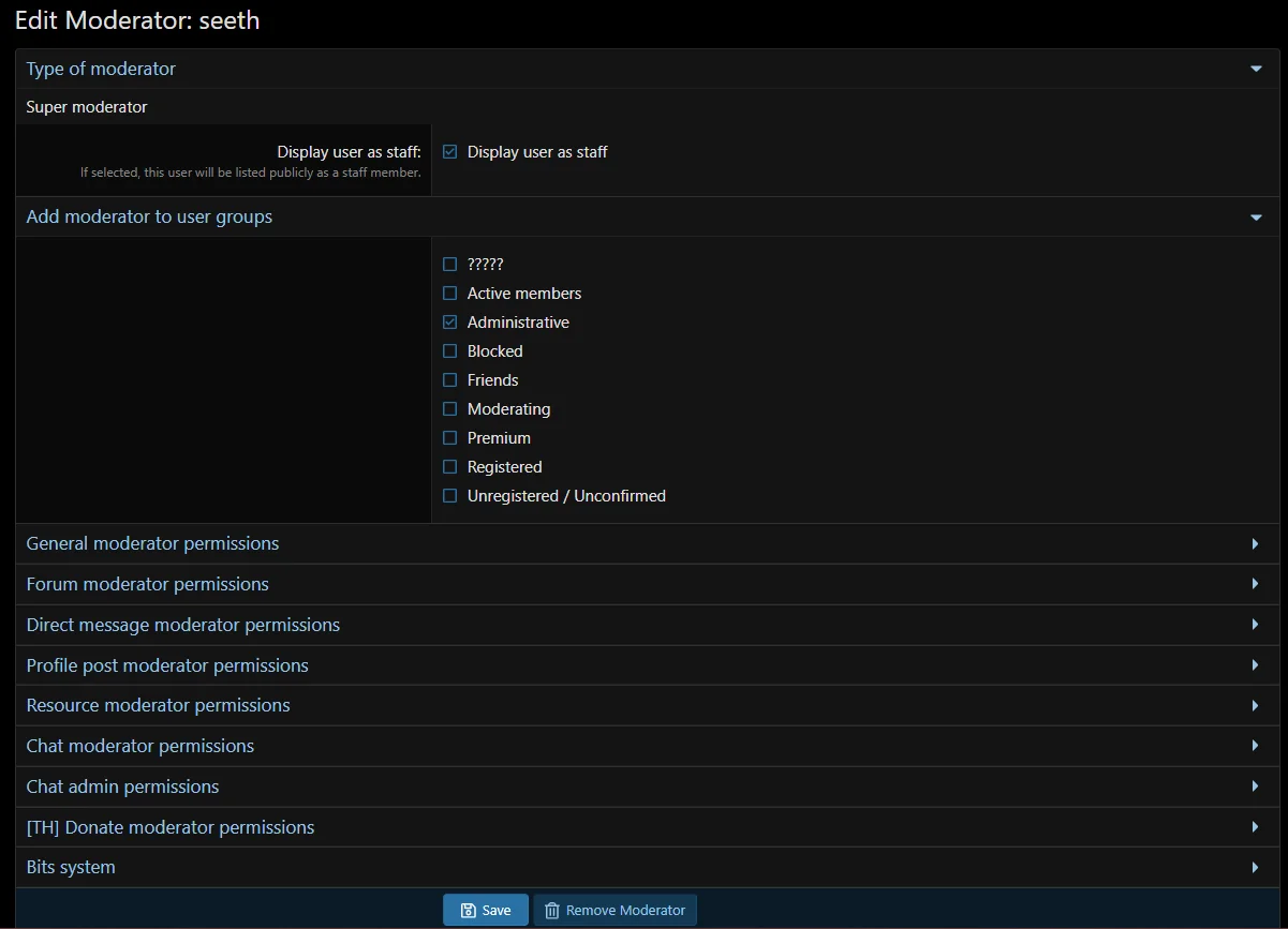 — Assigning a moderator via the moderator panel.