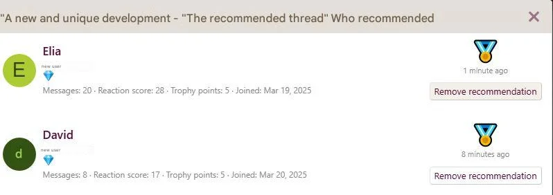 • List of users who recommended a thread