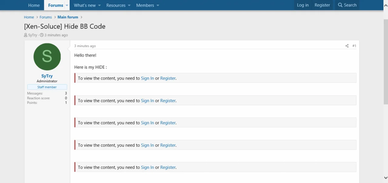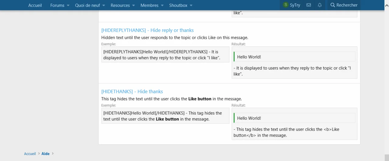 - This add-on allow you to add the BB Code [HIDE] and more to your forum.