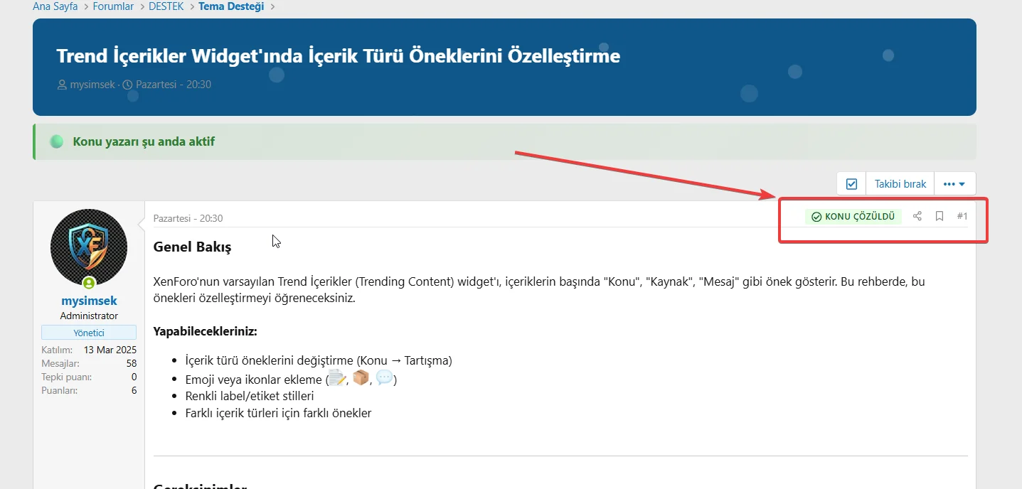 - Green badge and icon for solved topics