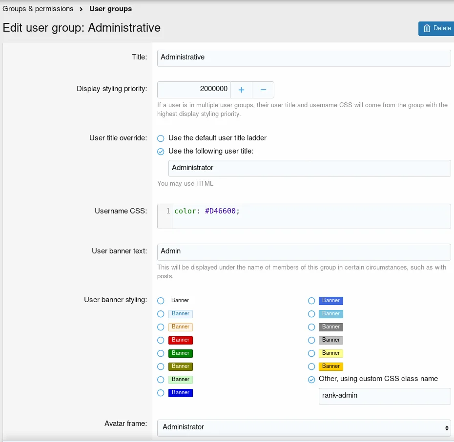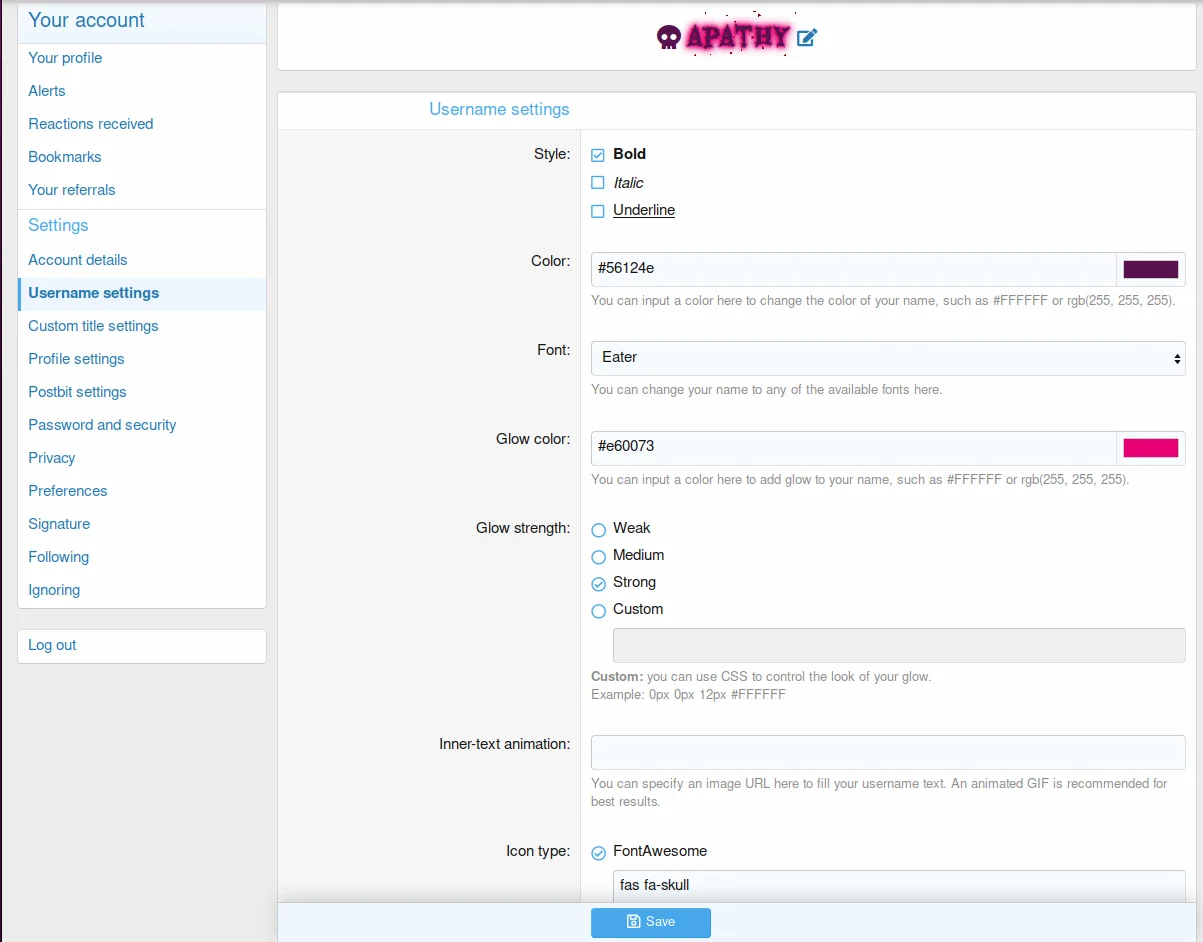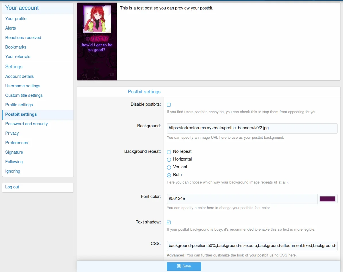 - Can manage various options for avatar frames, fonts, sparkles, and postbit presets