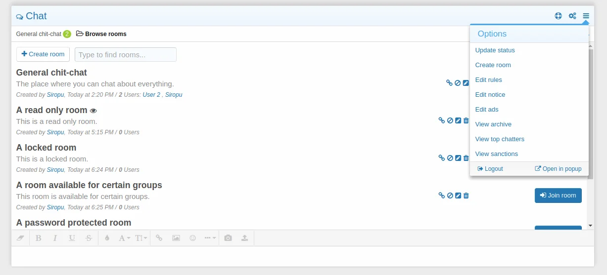- Repost in selected rooms - Allows you to automatically repost the messages you post in this room in other rooms (admin option)