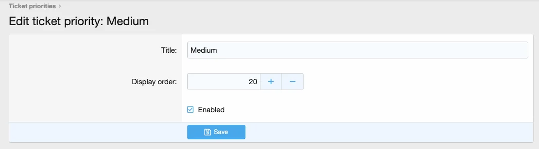 • Optional and customisable priority selection letting you prioritise user tickets based on the severity. Priorities (and other ticket information) can be changed dynamically with escalations for further automation.