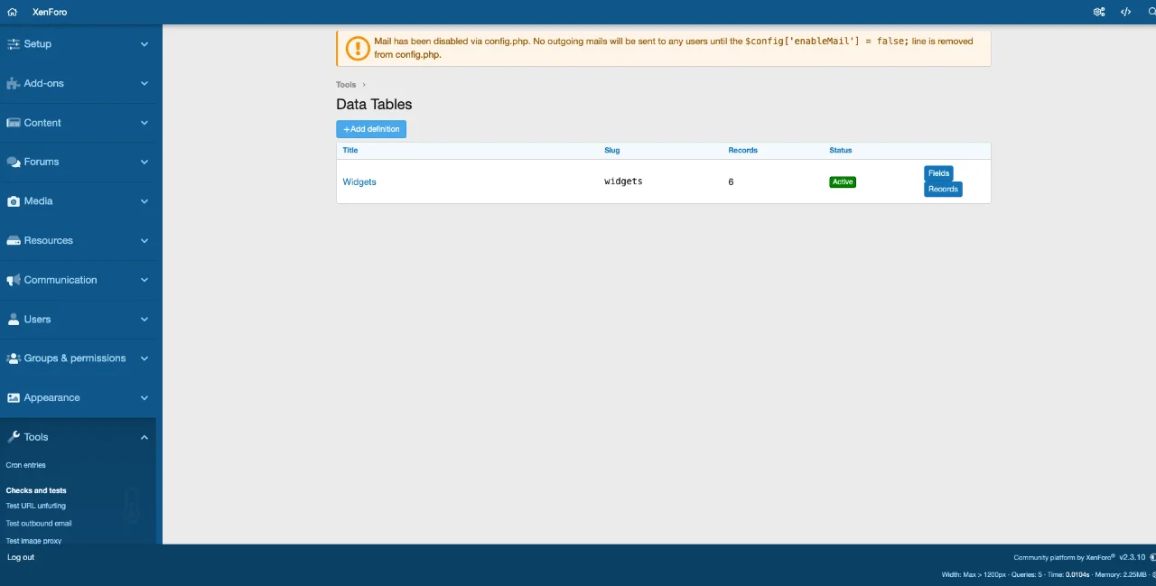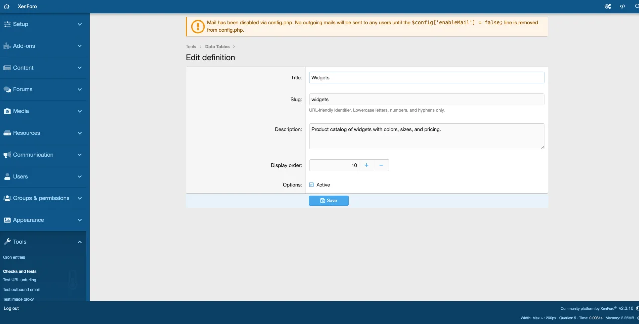 - Create a Definition - Go to AdminCP > Tools > Data Tables > Add Definition. Give it a title (e.g., "Product Catalog") and a URL slug (e.g., "products").