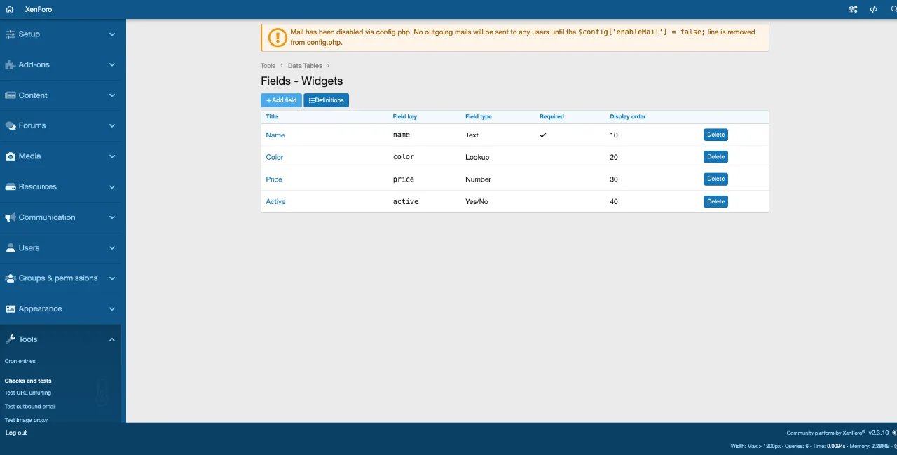 - Navigate to AdminCP > Tools > Data Tables to start creating tables