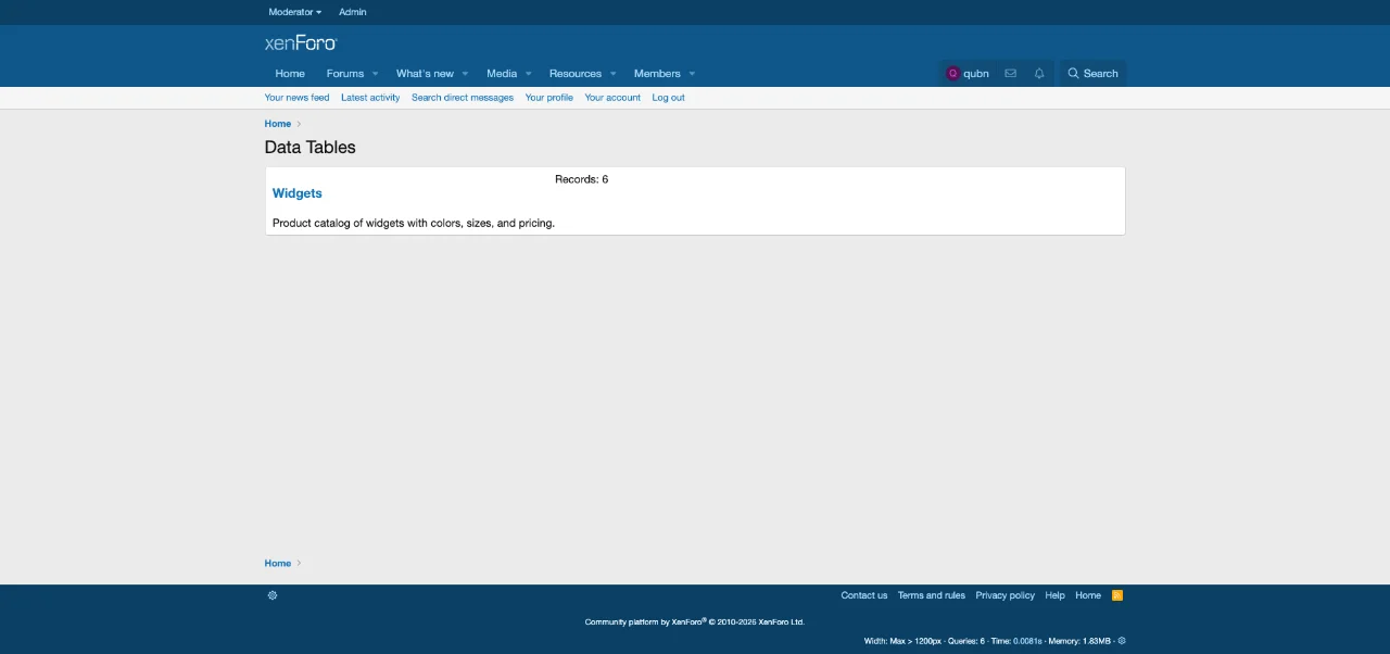 Data Tables lets administrators create stand-alone, fully customizable data tables within XenForo - no code required. Define your own columns, set up dropdown lookups, link records across tables, and manage structured data right from the AdminCP, with clean public-facing display pages wrapped in your forum's theme.