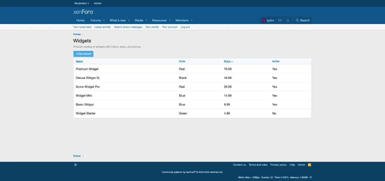 Perfect for product catalogs, game databases, team rosters, pricing tables, inventory lists, or any structured data that doesn't fit neatly into forum threads.