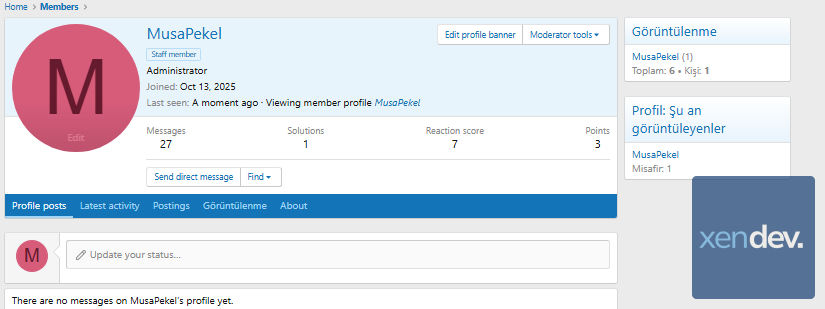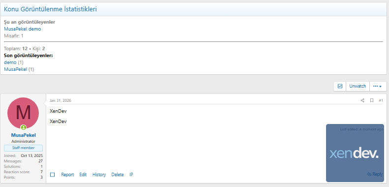 [XenDev] Viewing Statistics is an advanced statistics plugin developed for XenForo 2.3-based forums.This plugin allows you to track profile, topic, and forum views ; it also displays data such as recent viewers , currently active visitors , and most viewed content